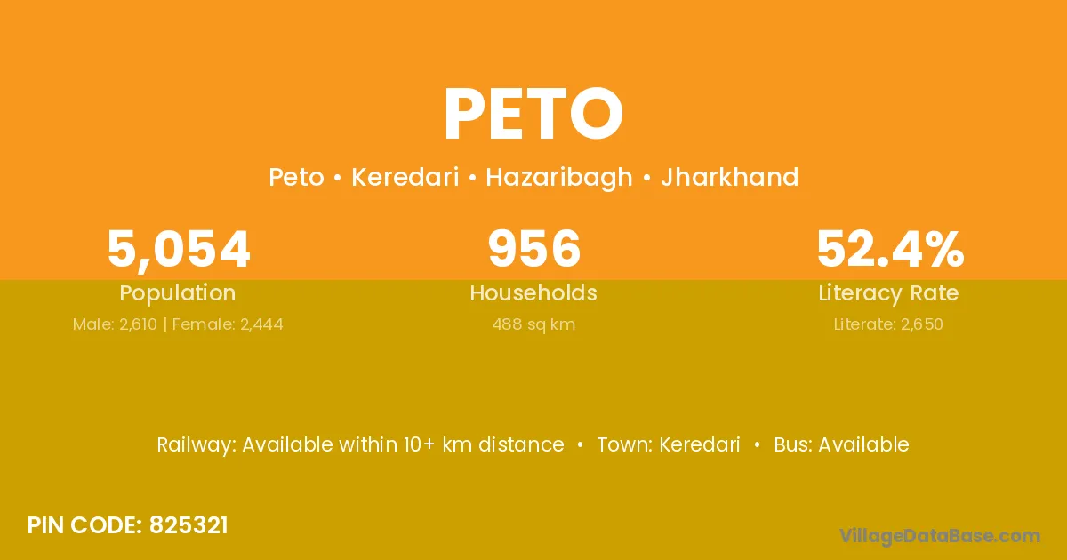 Peto village is located in the Keredari Subdivision of the Hazaribagh district in Jharkhand .