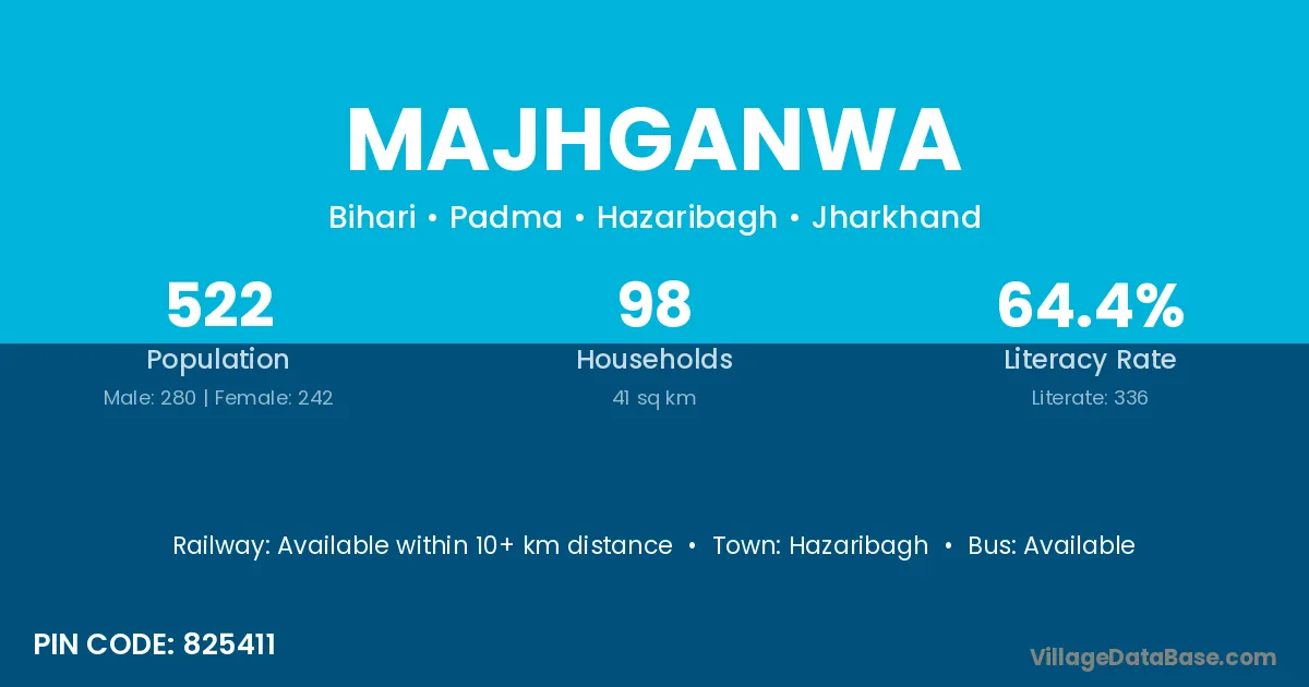 Hazaribagh is the nearest town to Majhganwa village for major economic activities