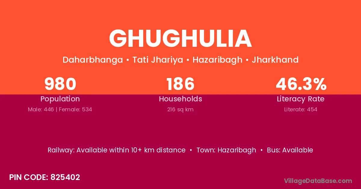 Hazaribagh is the nearest town to Ghughulia village for major economic activities