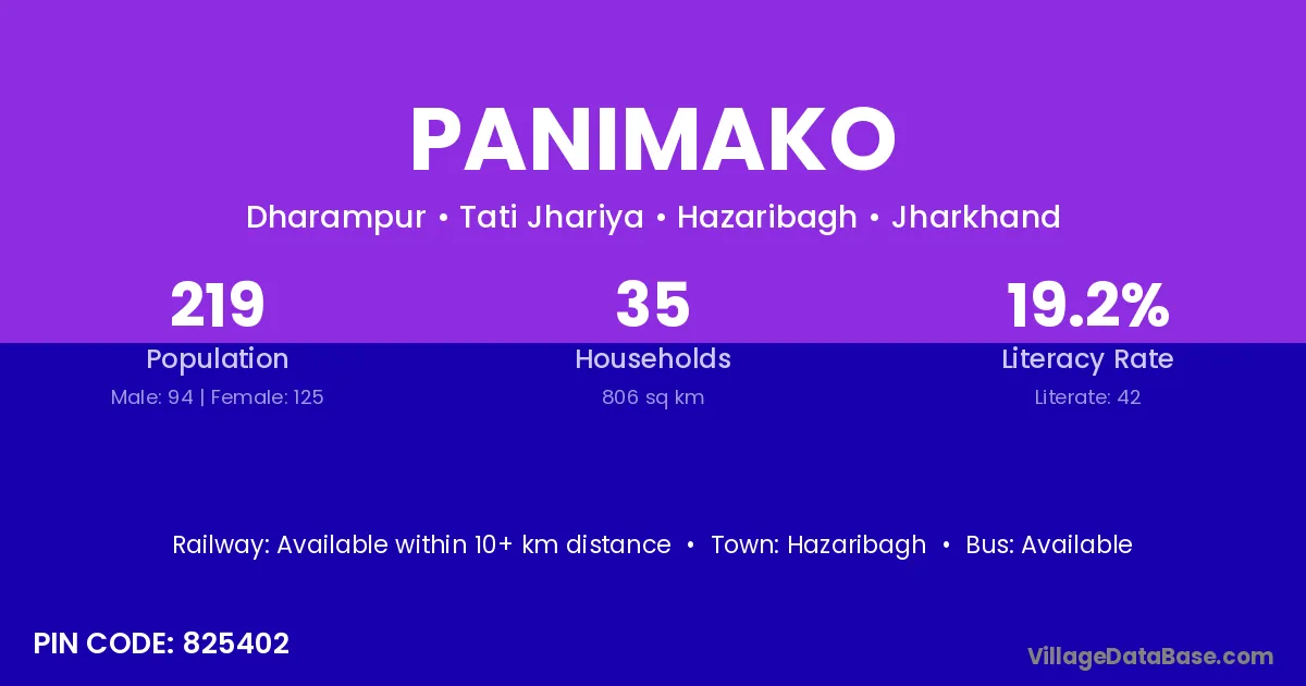 Hazaribagh is the nearest town to Panimako village for major economic activities