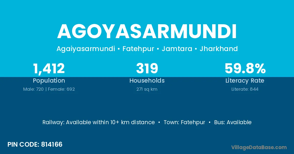 Fatehpur is the nearest town to Agoyasarmundi village for major economic activities