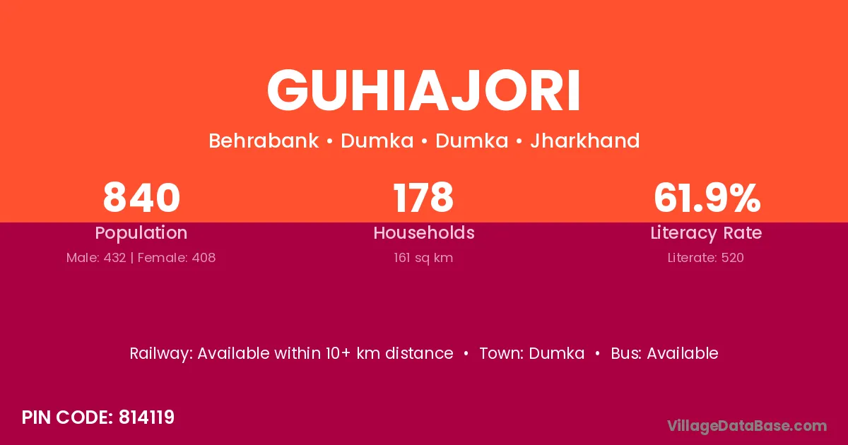 Guhiajori village has a total population of 1,157 people, of which 599 are males and 558 are females.
