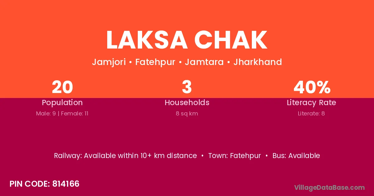 Laksa Chak village is located in the Fatehpur Subdivision of the Jamtara district in Jharkhand .