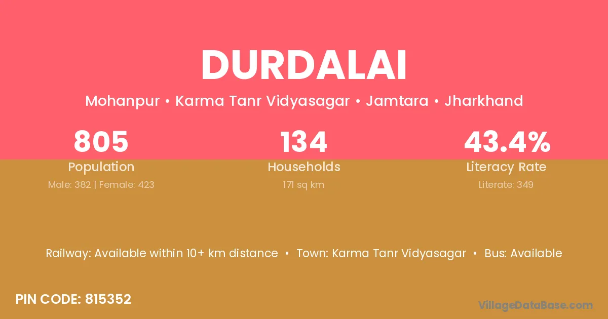According to Census 2011 information, the village code of Durdalai village is 815352.