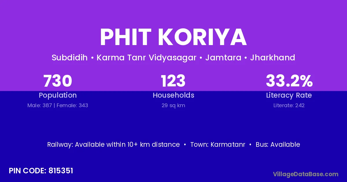 Karmatanr is the nearest town to Phit Koriya village for major economic activities