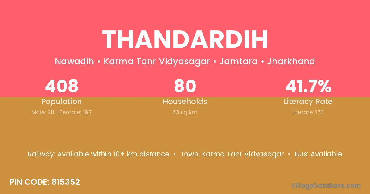 Thandardih village has a total population of 408 people, of which 211 are males and 197 are females.