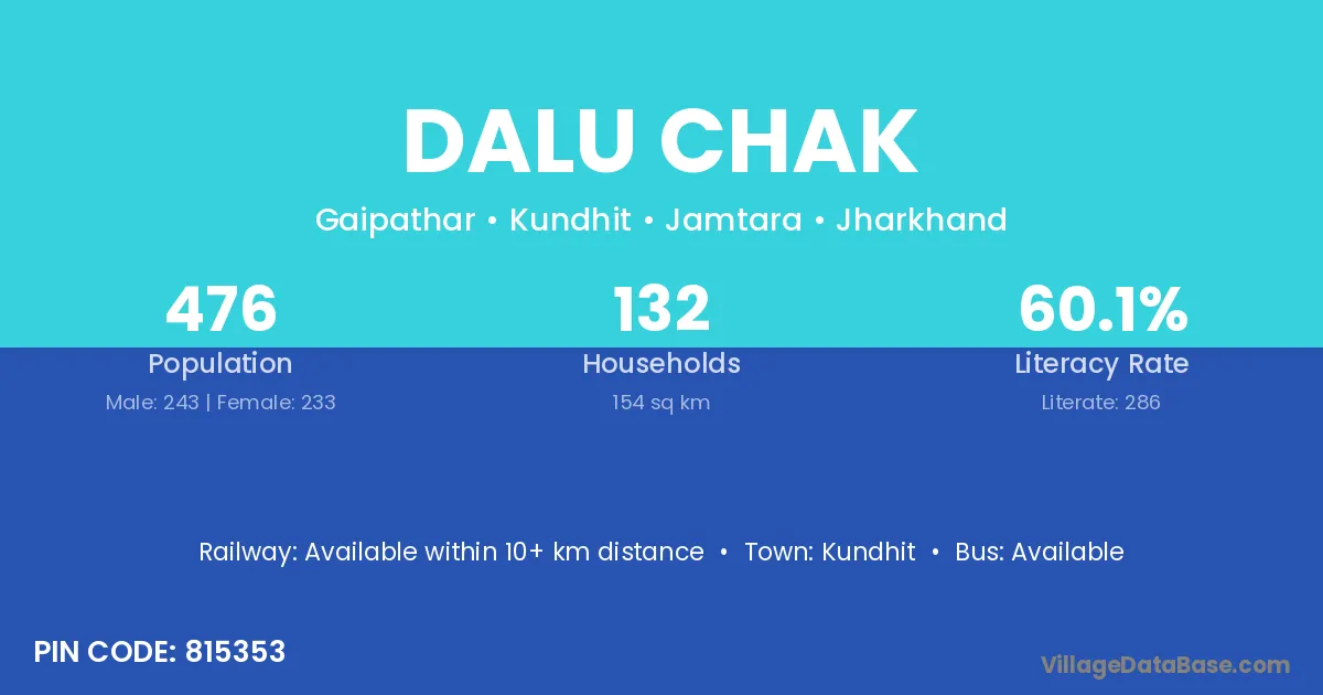 Dalu Chak village has a total population of 476 people, of which 243 are males and 233 are females.