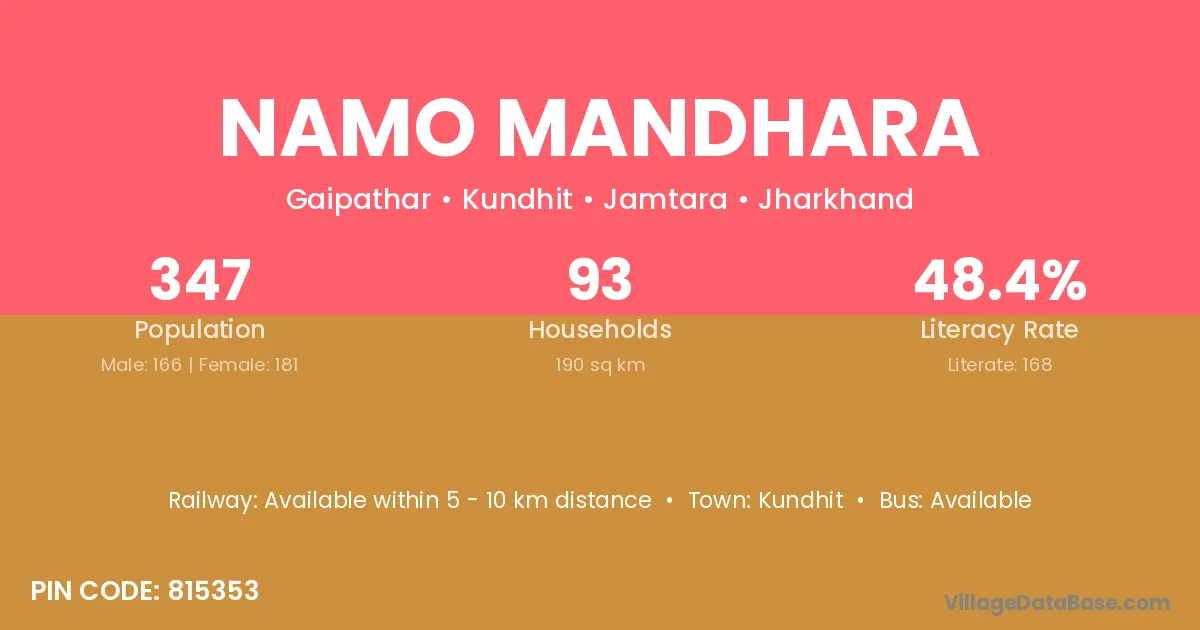 Namo Mandhara village has a total population of 347 people, of which 166 are males and 181 are females.