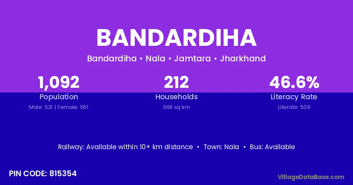Bandardiha village has a total population of 1,092 people, of which 531 are males and 561 are females.