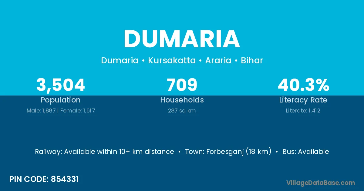 There are approximately 122 households in Dumaria village.
