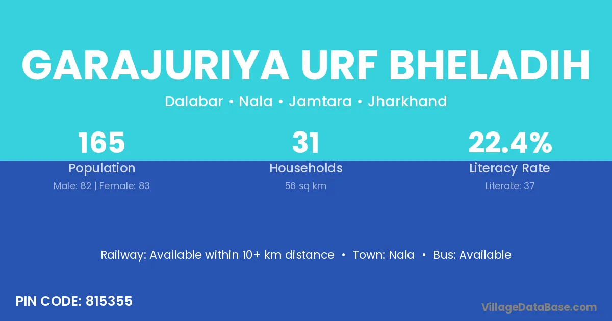 Garajuriya Urf Bheladih village has a total population of 165 people, of which 82 are males and 83 are females.
