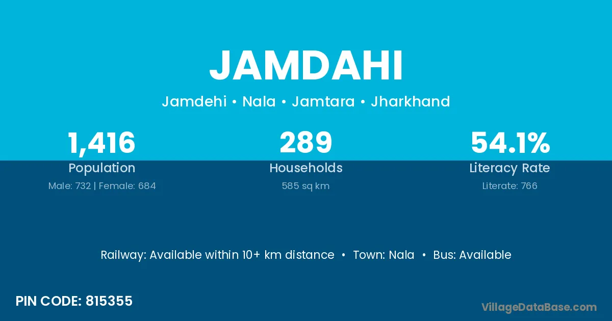 Jamdahi village has a total population of 1,416 people, of which 732 are males and 684 are females.
