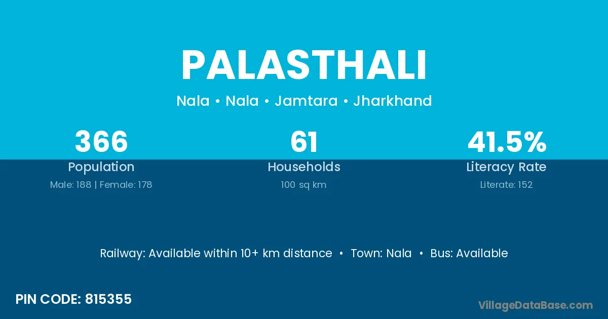Palasthali village has a total population of 366 people, of which 188 are males and 178 are females.