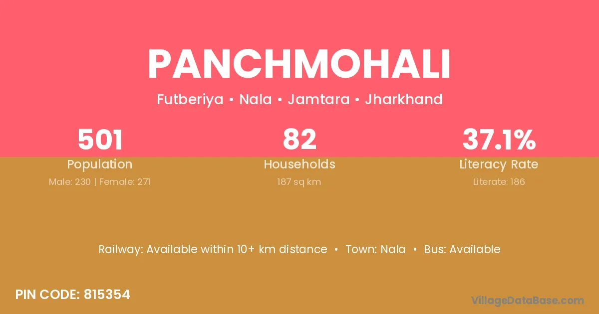 Panchmohali village has a total population of 501 people, of which 230 are males and 271 are females.