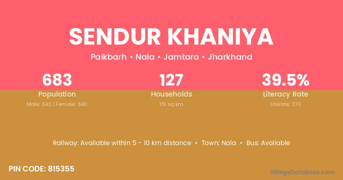 Sendur Khaniya village has a total population of 683 people, of which 343 are males and 340 are females.