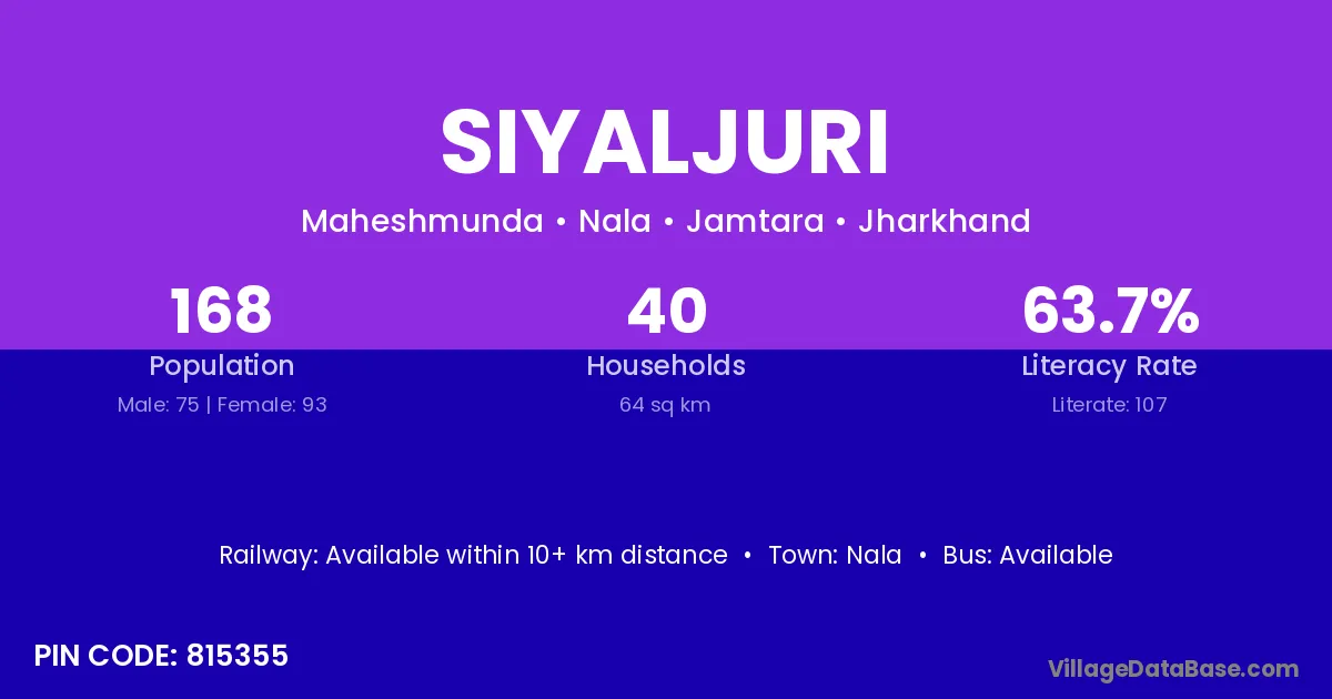 Nala is the nearest town to Siyaljuri village for major economic activities