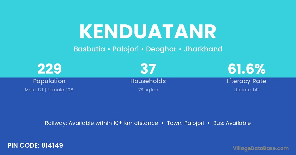 The literacy rate of Kenduatanr village is 48.89%. Male literacy stands at 52.83% and female literacy at 43.24%.