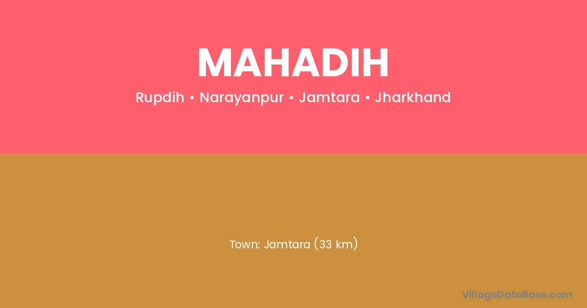 Jamtara (33 km) is the nearest town to Mahadih village for major economic activities and is located approximately 33 km away.