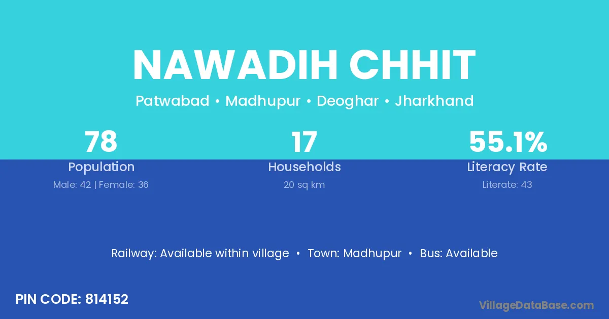 Jamtara (35 km) is the nearest town to Nawadih Chhit village for major economic activities and is located approximately 35 km away.