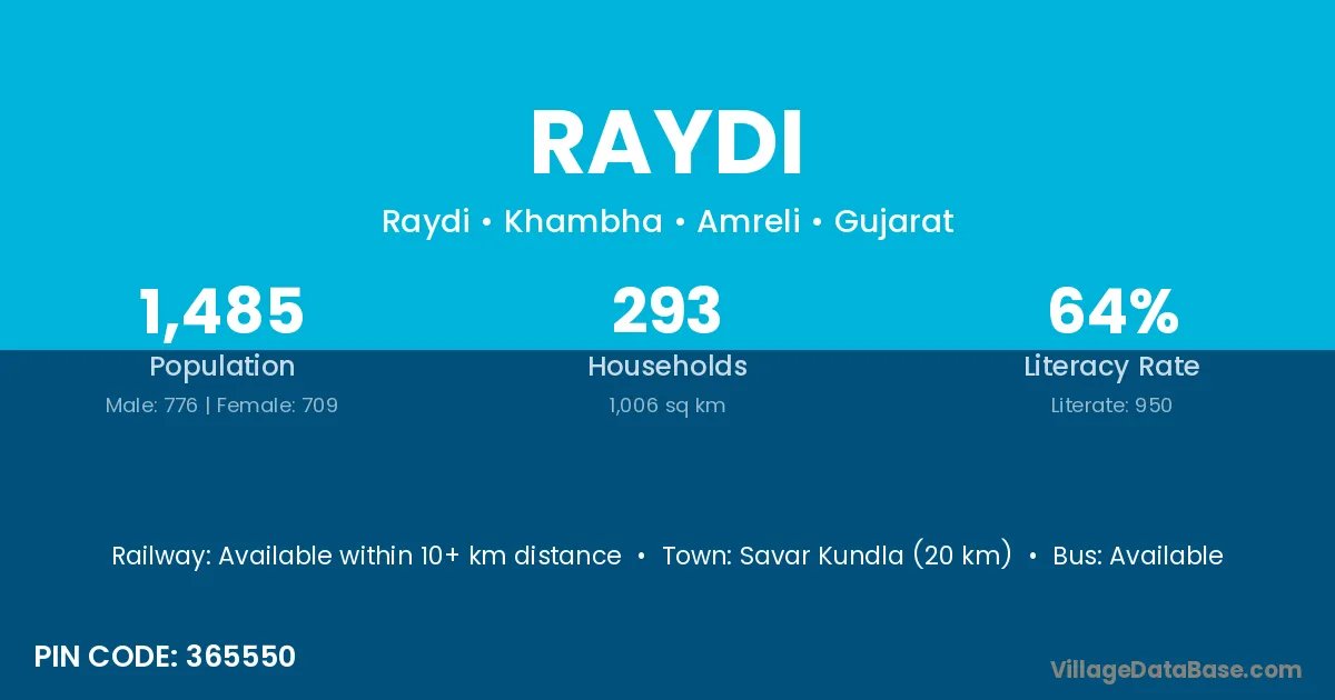 According to Census 2011 information, the village code of Raydi village is 815351.