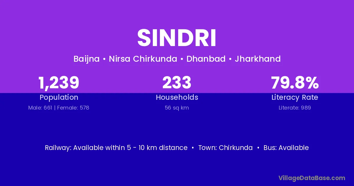 Jamtara is the nearest town to Sindri village for major economic activities