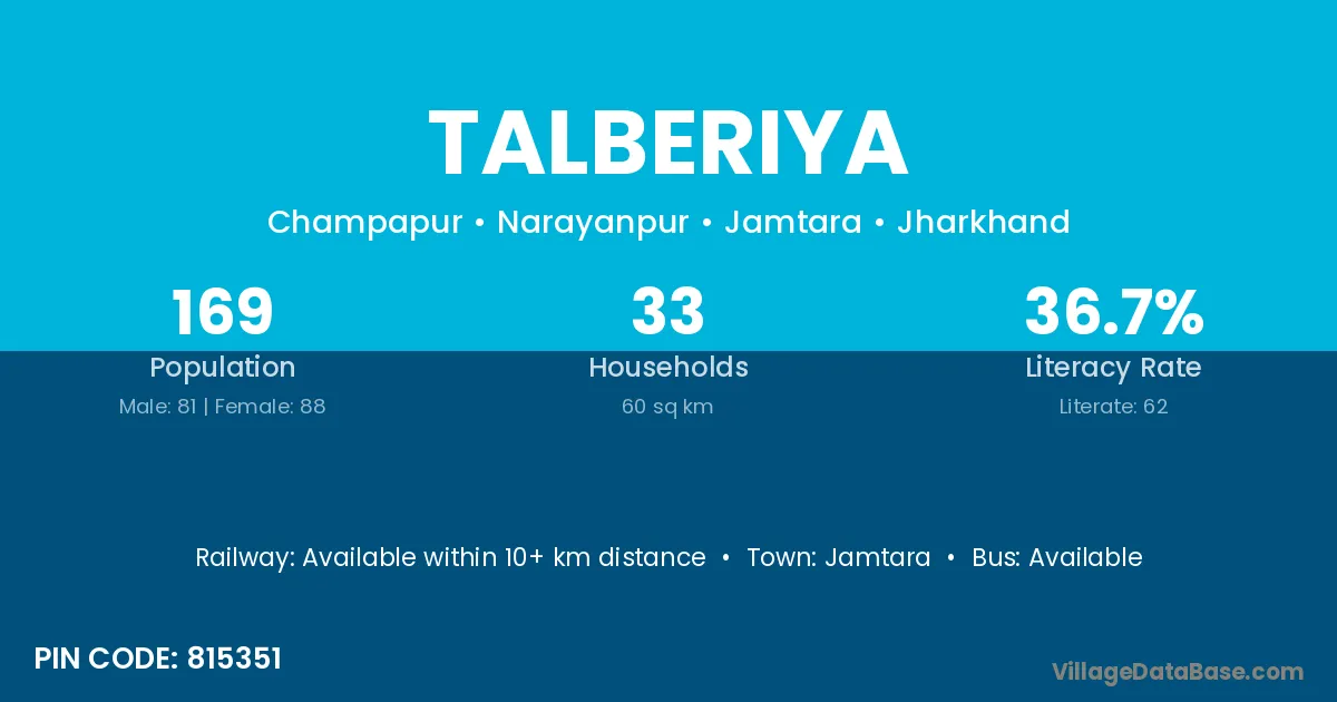 Jamtara is the nearest town to Talberiya village for major economic activities