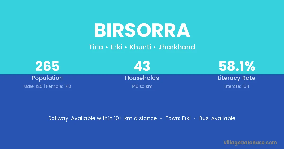 Birsorra village has a total population of 265 people, of which 125 are males and 140 are females.