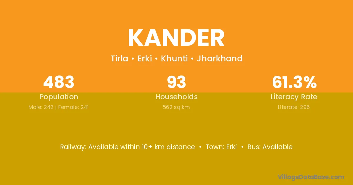 Kander village has a total population of 483 people, of which 242 are males and 241 are females.