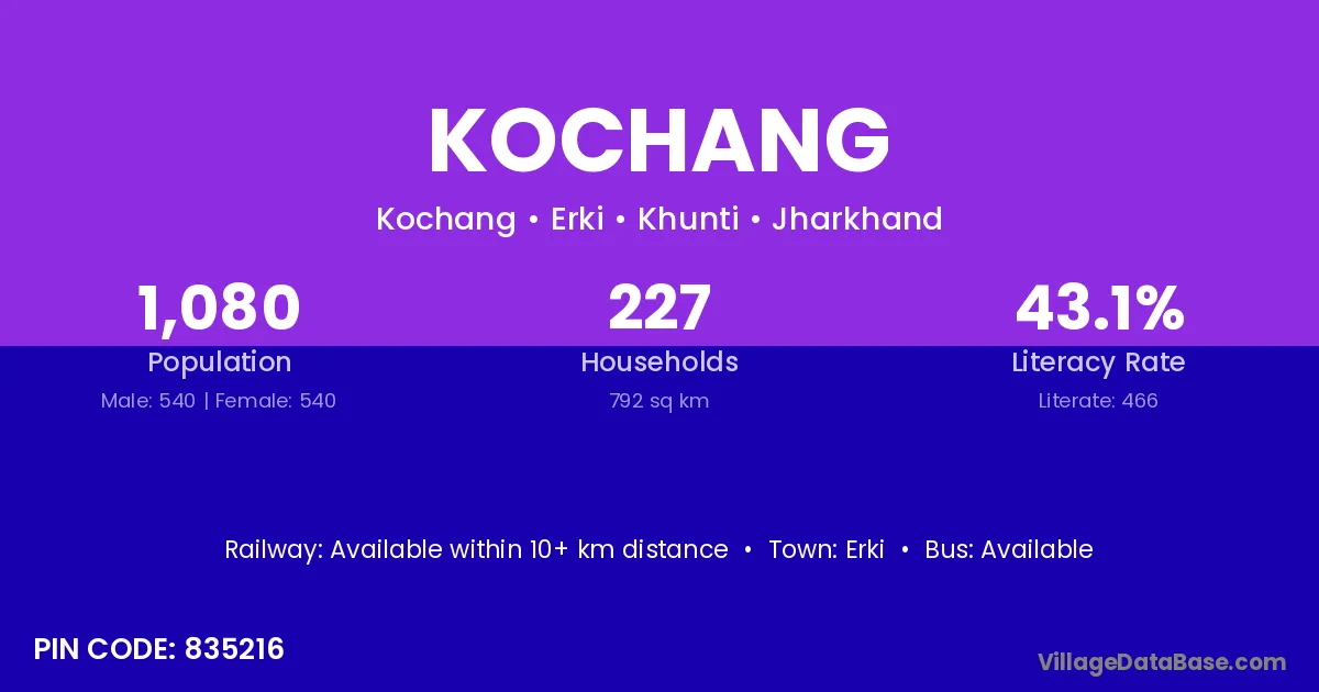 Kochang village is located in the Erki Subdivision of the Khunti district in Jharkhand .