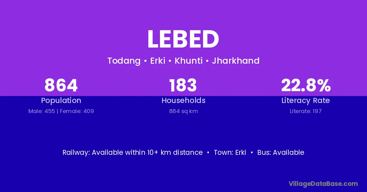 Lebed village is located in the Erki Subdivision of the Khunti district in Jharkhand .