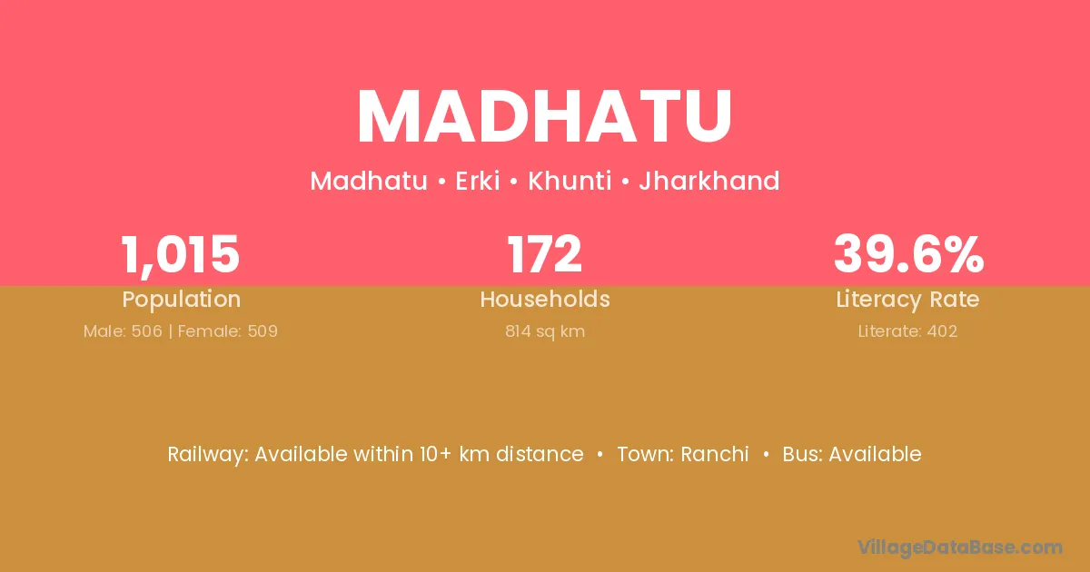 Ranchi is the nearest town to Madhatu village for major economic activities