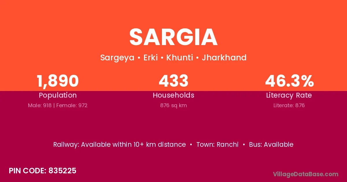 Sargia village has a total population of 1,890 people, of which 918 are males and 972 are females.