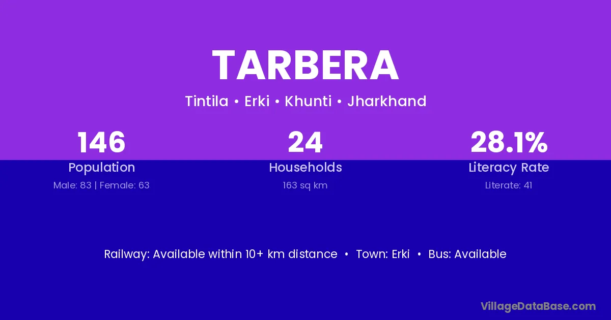Tarbera village is located in the Erki Subdivision of the Khunti district in Jharkhand .