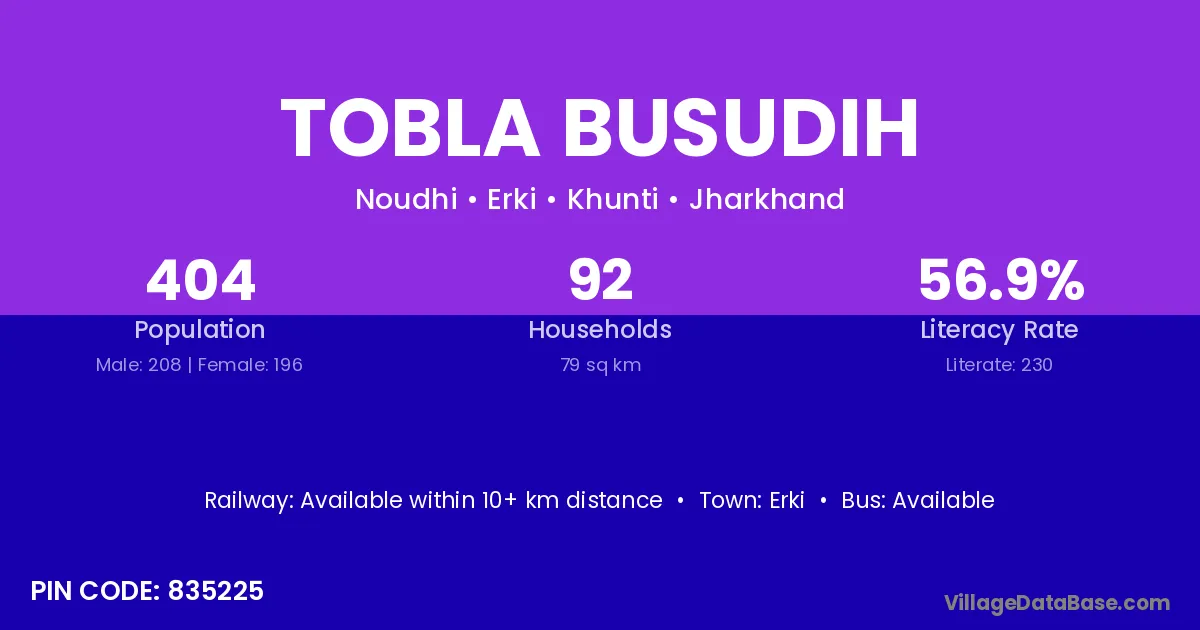 Tobla Busudih village is located in the Erki Subdivision of the Khunti district in Jharkhand .