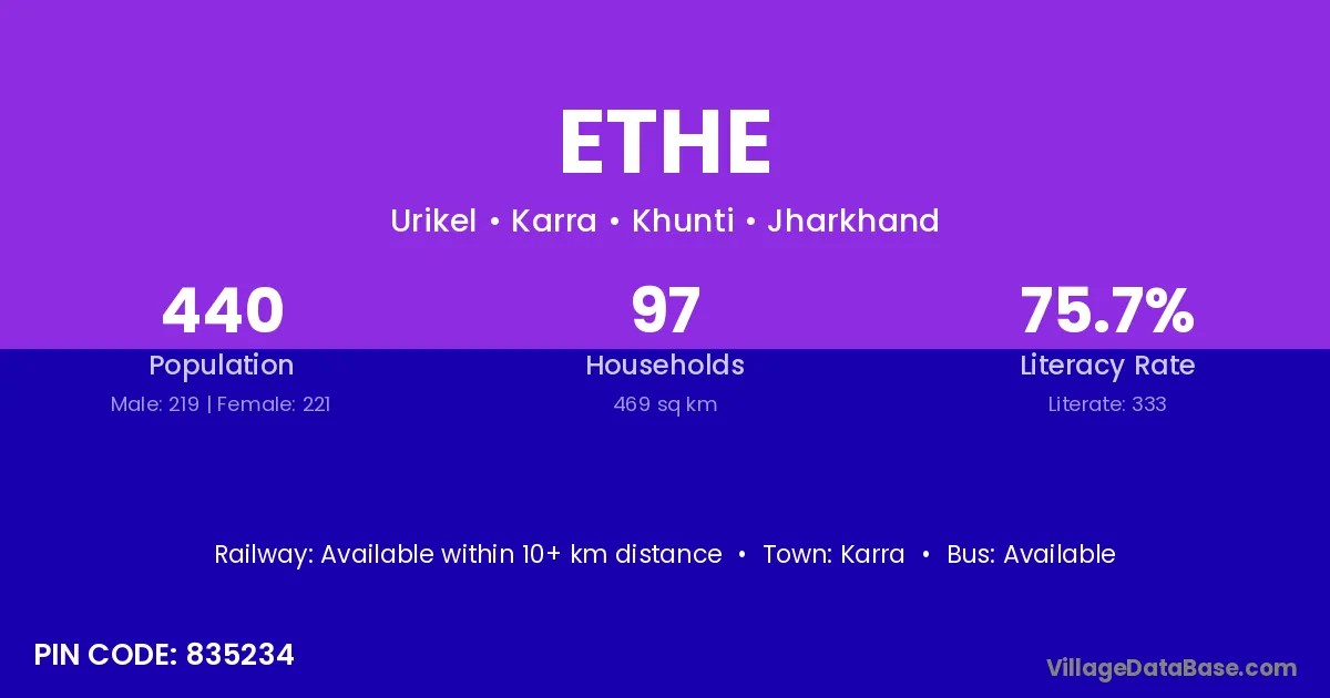 Ethe village is located in the Karra Subdivision of the Khunti district in Jharkhand .