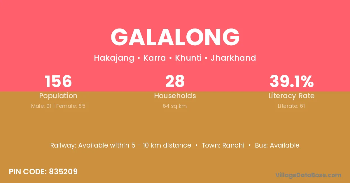 Ranchi is the nearest town to Galalong village for major economic activities