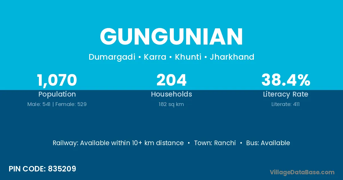 Gungunian village is located in the Karra Subdivision of the Khunti district in Jharkhand .