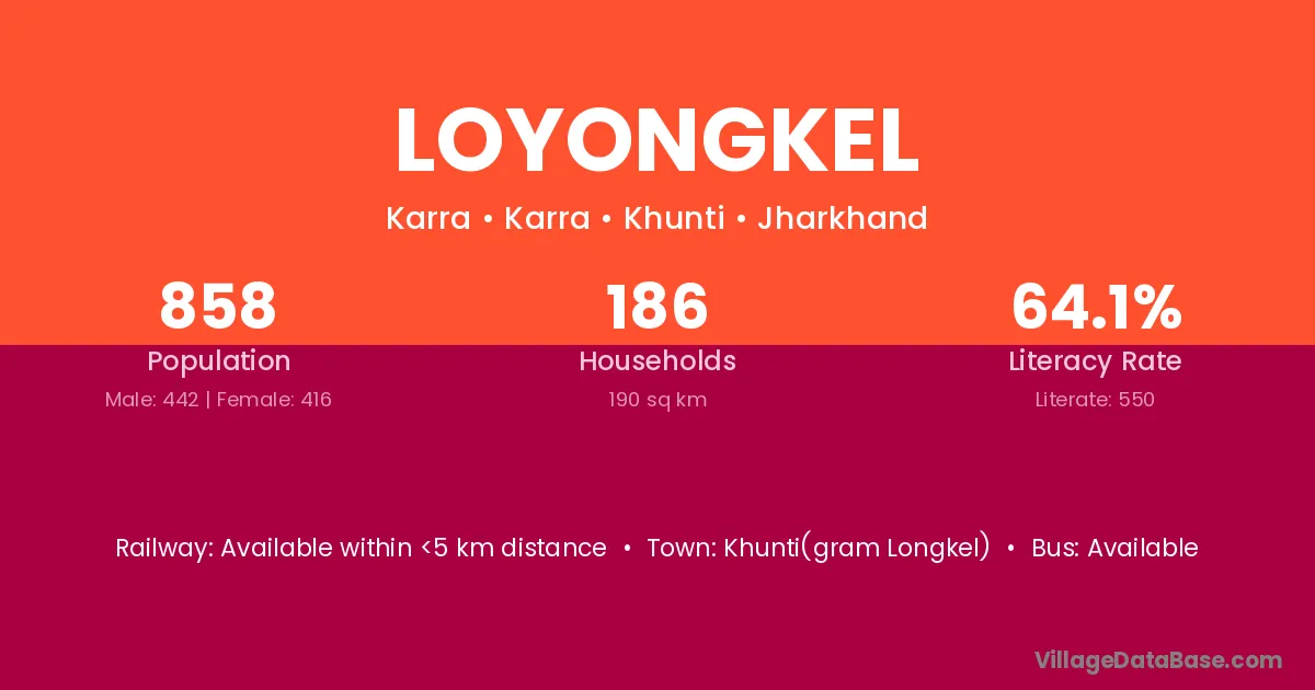 Loyongkel village is located in the Karra Subdivision of the Khunti district in Jharkhand .
