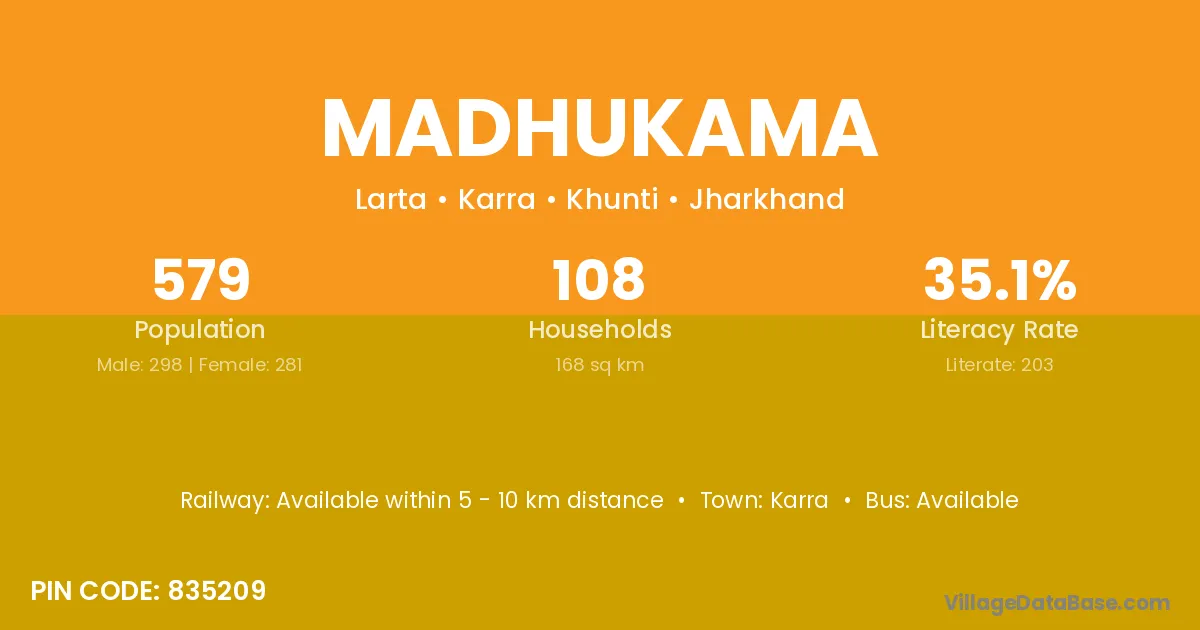Madhukama village has a total population of 579 people, of which 298 are males and 281 are females.
