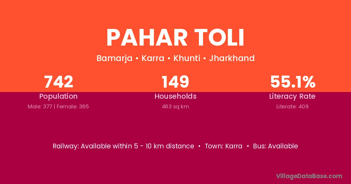 Pahar Toli village has a total population of 742 people, of which 377 are males and 365 are females.