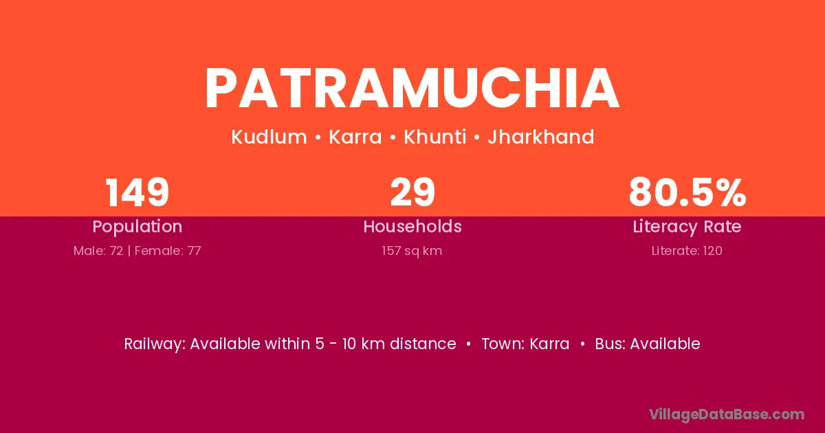Patramuchia village has a total population of 149 people, of which 72 are males and 77 are females.