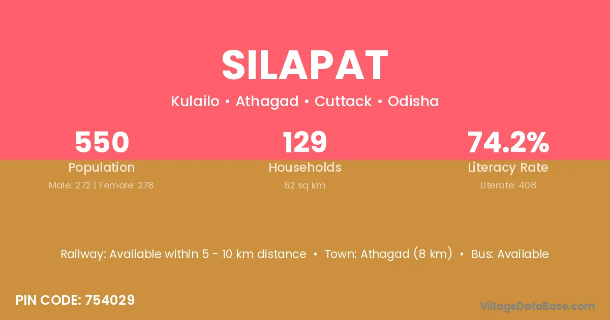 The literacy rate of Silapat village is 36.34%. Male literacy stands at 42.33% and female literacy at 30.59%.