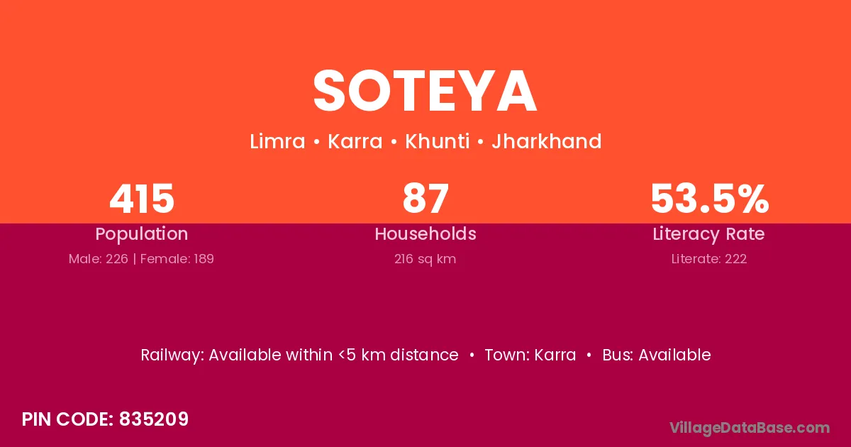 According to Census 2011 information, the village code of Soteya village is 835209.