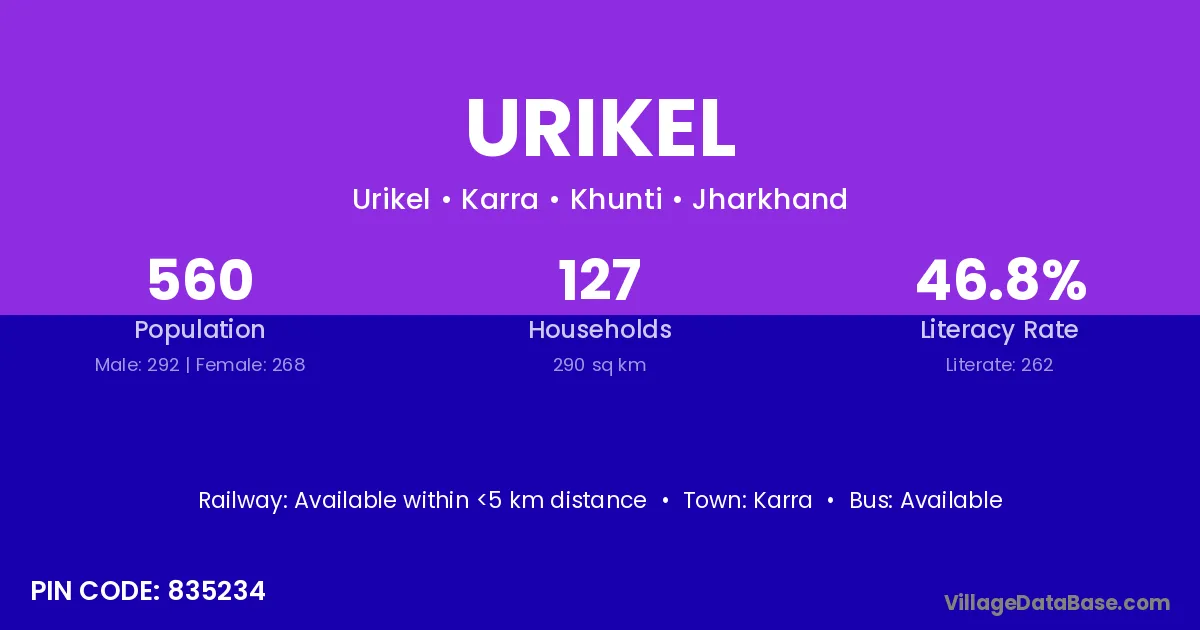 Urikel village has a total population of 560 people, of which 292 are males and 268 are females.