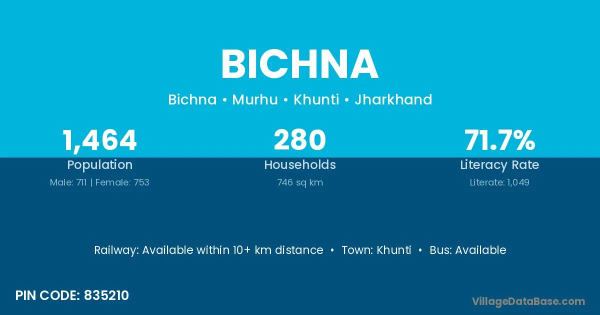 Khunti is the nearest town to Bichna village for major economic activities
