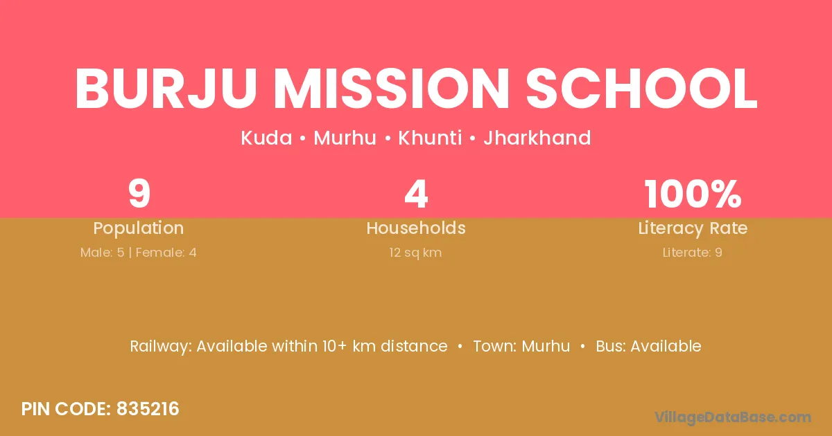 Burju Mission School village has a total population of 9 people, of which 5 are males and 4 are females.