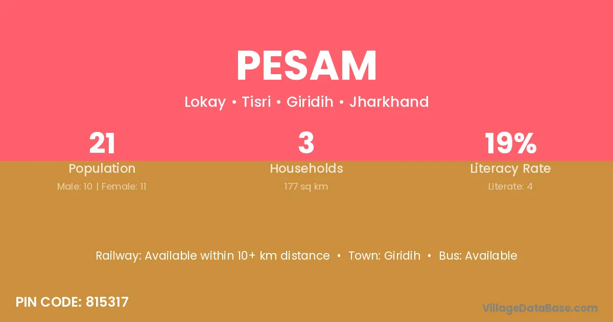 Pesam village has a total population of 415 people, of which 214 are males and 201 are females.