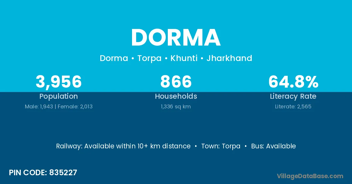 According to Census 2011 information, the village code of Dorma village is 835227.