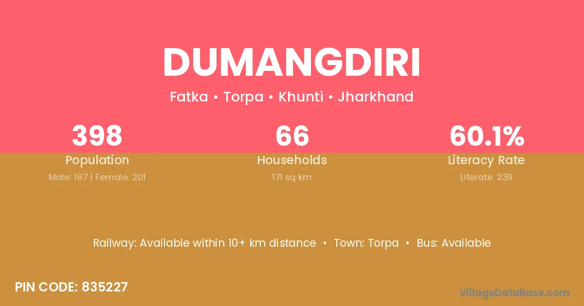 Dumangdiri village is located in the Torpa Subdivision of the Khunti district in Jharkhand .