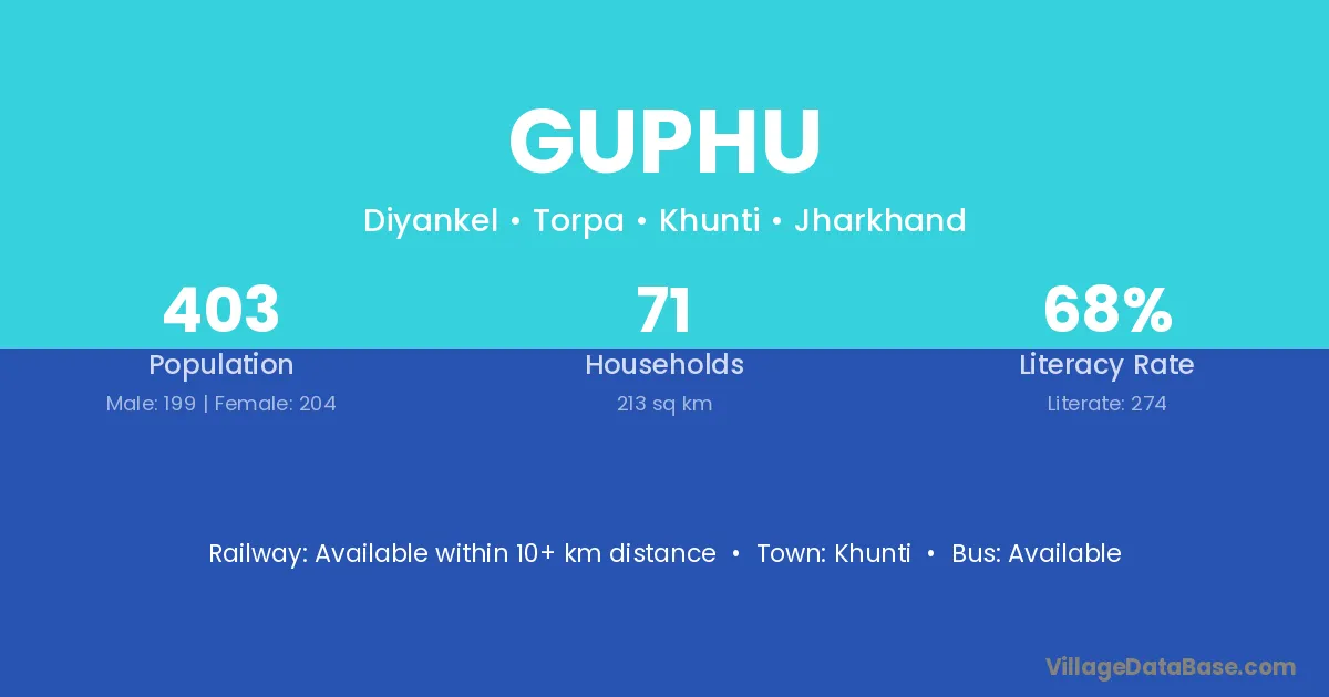Khunti is the nearest town to Guphu village for major economic activities